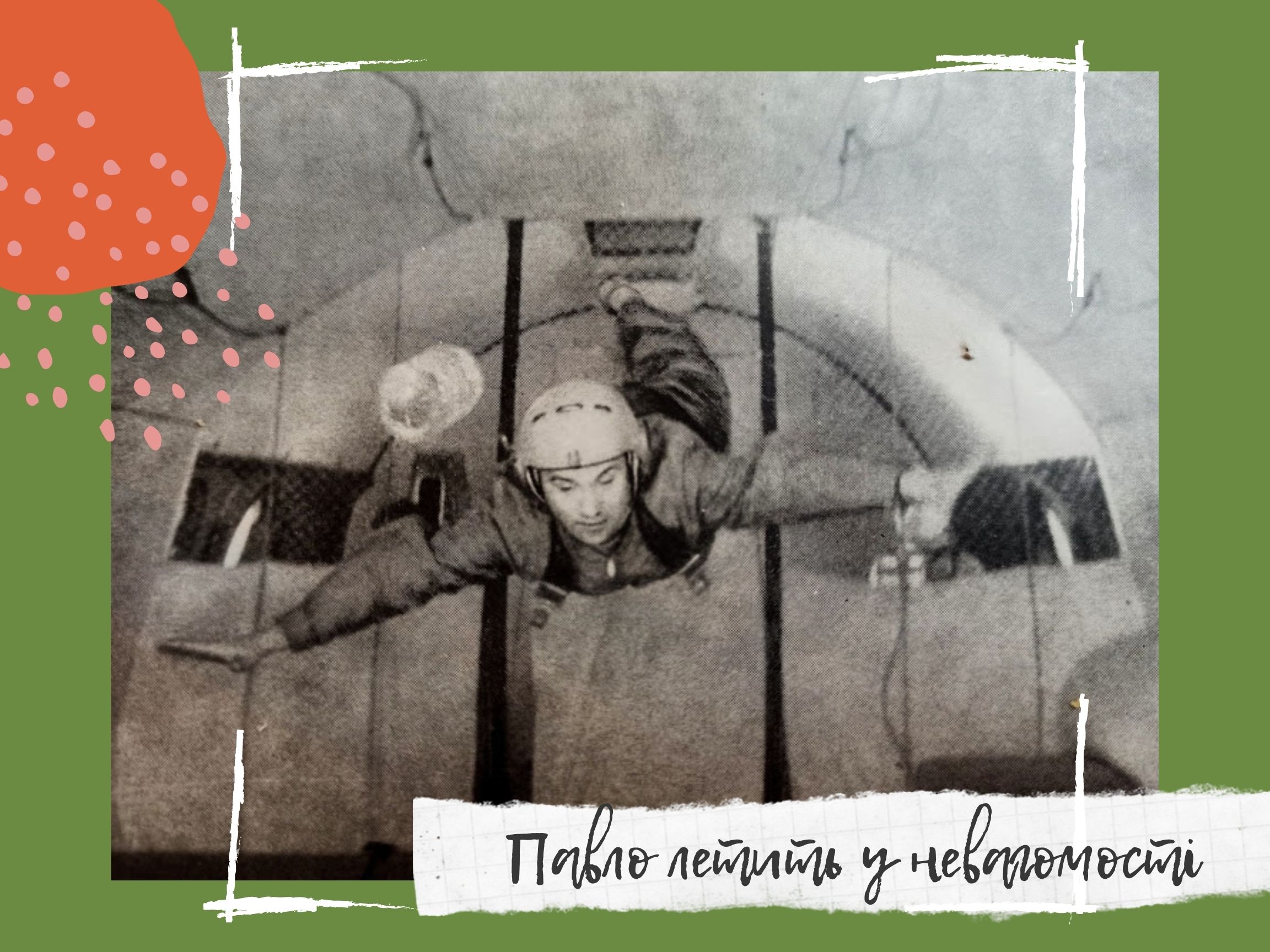 Лещата перевантаження стискають груди. Дихати неймовірно важко. Неможливо підняти руку. Важко поворухнути пальцем. Здавалося ще трошки, і грудна клітка не витримає, затріщить. Терпить. Безпомилково відповідає, хоча очі сльозяться від повітряного струменя, який збирається аж під скло окулярів. І раптом якось одразу настає полегшення. Оберти зменшено. Центрифуга зупиняється. Але ще деякий час йому здається, що він летить по колу. Примхи вестибулярного апарата. Не встає з крісла, поки не дозволять лікарі. Пульс та все інше має прийти до норми. Павла частують морквою, і тут він чує знайомий голос: