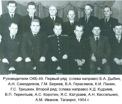 Численность ЦКБ МС в первые годы своей деятельности была небольшой, но именно тогда сложилось ядро коллектива, были заложены его традиции. Вместе с Г.М. Бериевым приехали в Таганрог Я.С. Катураев и В.А. Герасимов, начинавшие работать с Георгием Михайловичем еще в ЦКБ при заводе № 39 им. Менжинского в Москве. С начала организации ОКБ в Таганроге в него пришли А.С. Корытин, А.Н. Кессених, Г.С. Тришкин, В.П. Терентьев, А.А. Клицов. Свою лепту в создание ЦКБ МС внес П.Д. Самсонов, который несколько лет был заместителем Г.М. Бериева.